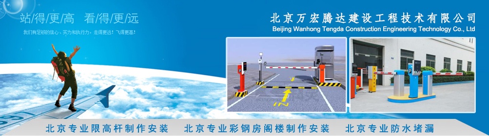 歡迎各界朋友,歡迎您訪問北京萬宏騰達建設工程技術有限公司網站(www.bjwhdjz_com.whxingwang.cn),北京萬宏騰達建設工程技術有限公司專業從事高中低檔限高桿制作安裝,專業承接工程、家庭學校醫院彩鋼房閣樓制作安裝,專業防水堵漏,專業劃車位線,24小時咨詢電話:1367125  更多